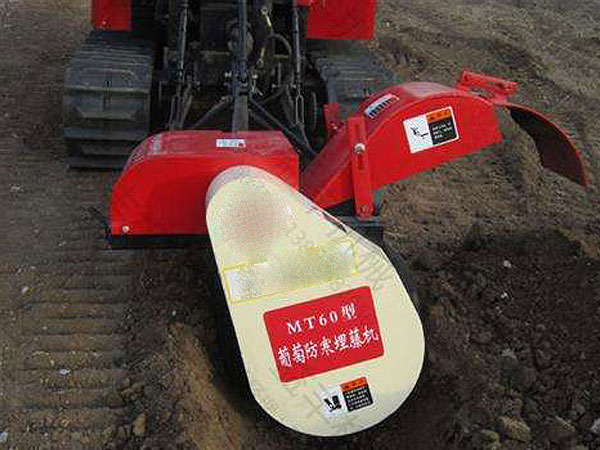 我公司研制的以使用廣泛的手扶拖拉機為動力的新型葡萄埋藤機,操作簡單,對各種地塊適應性強,工作效率高、埋土效果好、不傷根、不傷藤、堆土密、不漏風、比人工埋藤效果提高30倍以上,降低了勞動強度,節(jié)約勞動成本,符合現(xiàn)代農業(yè)發(fā)展方向。